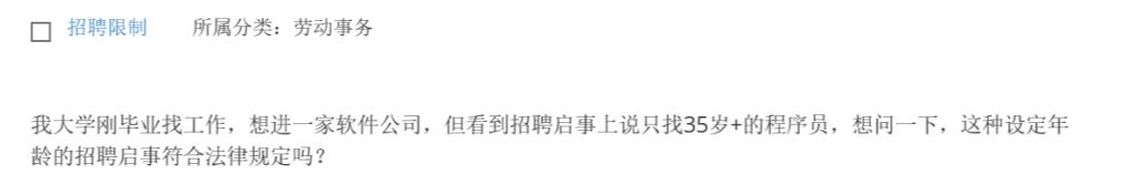 我刚毕业找工作,想进一家软件公司,但看到招聘启事上说只招聘35岁以上的程序员,请问这种设定年龄的招聘启事符合法律规定吗?